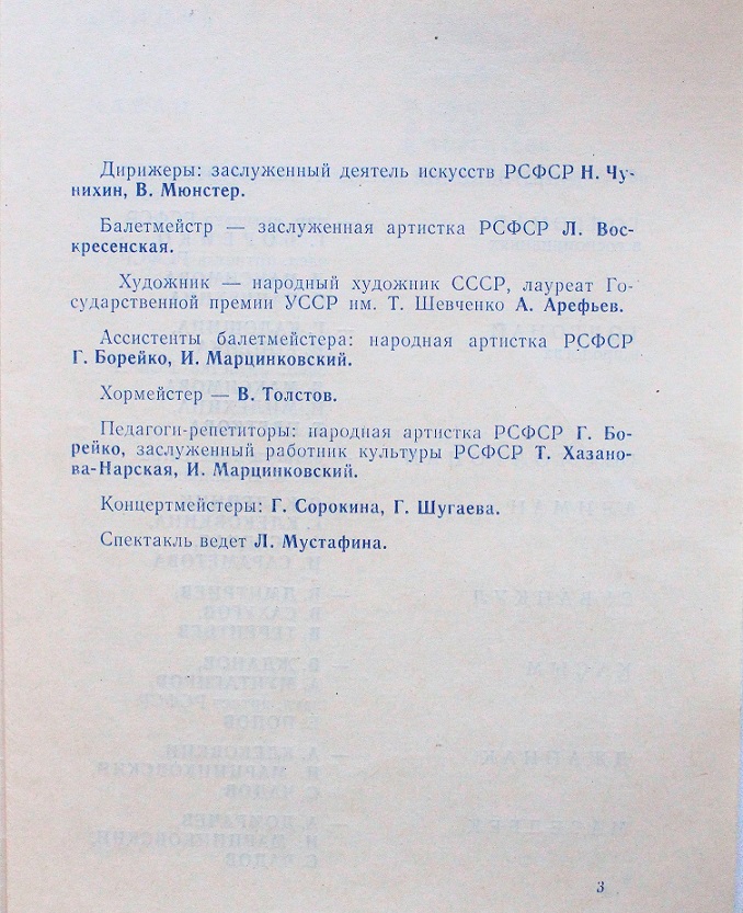 Хормейстеры – заслуженный артист РСФСР Ю. П. Борисов, Т. С. Матвеева