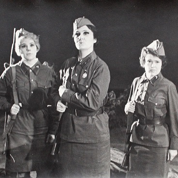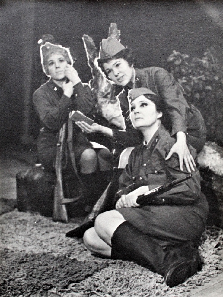 Художник-постановщик этого спектакля В. А. Кузьмин (1923-1985) участвовал в Великой Отечественной войне. Владимир Александрович был призван в Рабоче-крестьянскую Красную армию в 1941 году. В звании лейтенанта командовал минометным взводом 2-й минометной роты 808-го стрелкового полка (394-я стрелковая дивизия). 29 сентября 1943 года был контужен. Войну закончил в Болгарии.