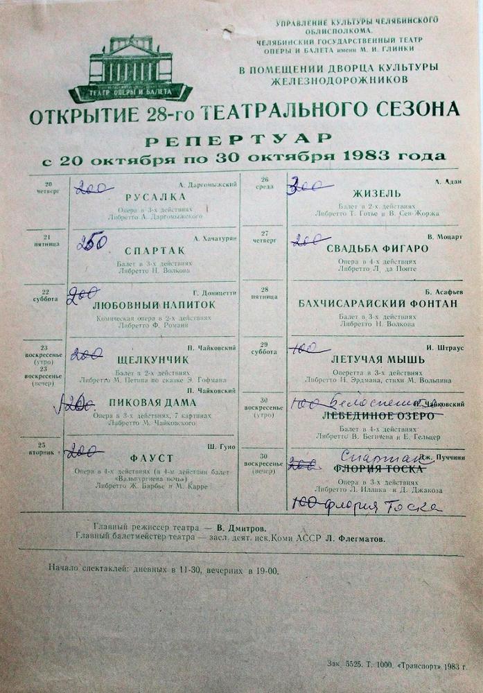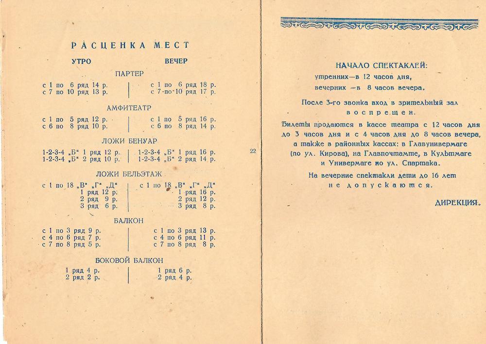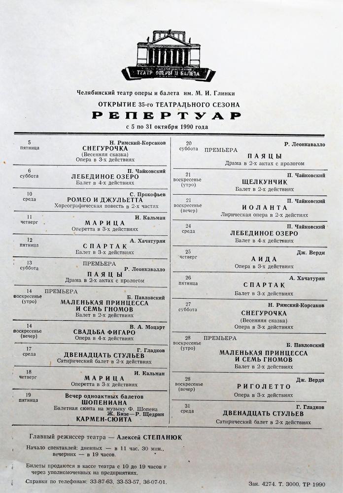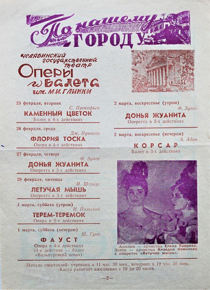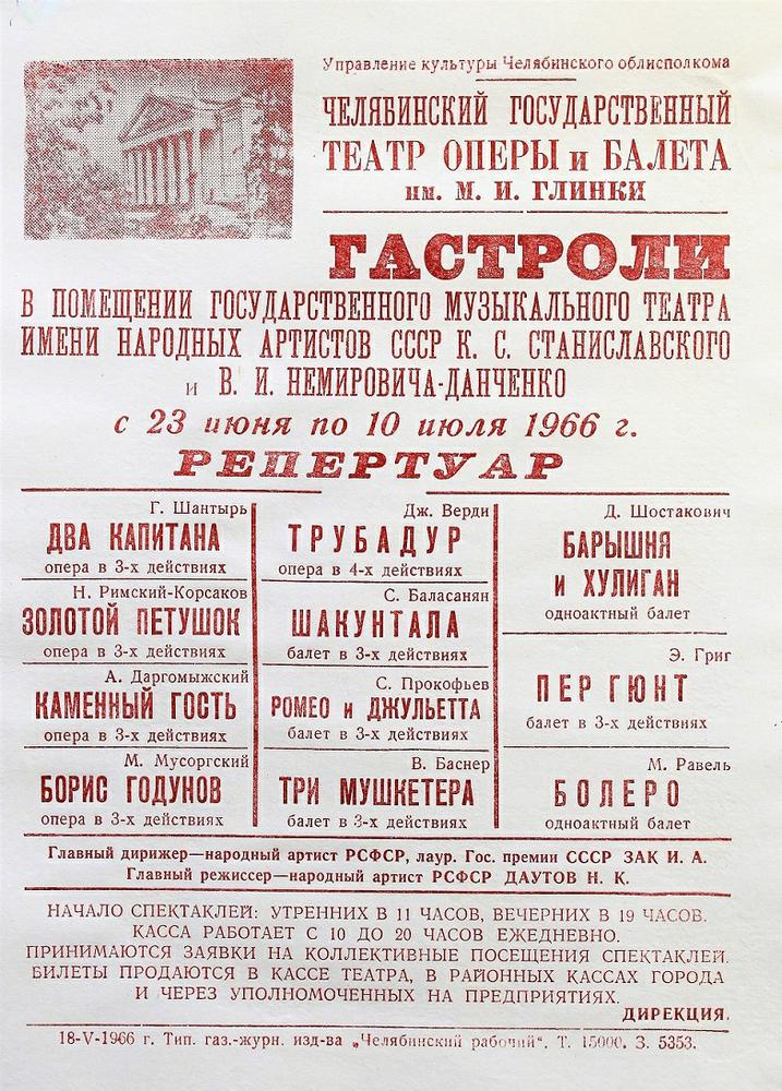1956 год, буклет1956 год, буклет1956 год, буклет1956 год, буклет1956 год, буклет1956 год, буклет1956 год, заслуженная артистка РСФСР Вера Дикопольская в роли Ярославны в опере Князь Игорь1956 год, народная артистка СССР Адырхаева Светлана - Зарема в балете Бахчисарайский фонтан1956 год, поздравление с открытием театра1957 год, Диана Лебедева - Танечка, народная артистка Беларусской ССР Клара Малышева - Ванечка в балете Айболит1957 год, Евгений Окунев - Риголетто в опере Риголетто 19571957 год, заслуженная артистка РСФСР Клавдия Сидорова в роли Маддалены в опере Риголетто1957 год, Ионас Капланас в роли Хозе в опере Кармен1958 год, заслуженный артист РСФСР Владимир Постников - Феб, народная артистка РФ Галина Борейко - Эсмеральда в балете Эсмеральда1958 год, программка 100 лет балету Лебединое озеро1958 год, Тамара Дулевская и заслуженный работник культуры РСФСР Владимир Криворуцкий в балете Большой вальс1959 год, заслуженная артистка РСФСР Клавдия Сидорова - Весна в опере Снегурочка1959 год, заслуженный артист Виталий Шкарин - Монтанелли в опере Овод1959 год, Олеся Хоменко в балете Цветок счастья1959 год, Раиса Громова - Джемма в опере Овод1959 год, сцена из балета Цветок счастья1960 год, заслуженная артистка РСФСР Лариса Ратенко - Жизель, заслуженный артист РСФСР Владимир Постников - Альберт в балете Жизель1960 год, Диана Лебедева - Катерина в балете Каменный цветок1960 год, заслуженный артист РСФСР Владимир Постников - Данила в балете Каменный цветок1960 год, заслуженный артист РСФСР Владимир Постников, заслуженная артистка РСФСР Лариса Ратенко, Диана Лебедева в балете Каменный цветок1960 год, народная артистка Белорусской ССР Клара Малышева - Никия в балете Баядерка1960 год, Нинель Степанова - Мирта в балете Жизель1961 год Светлана Емец - Аида в опере Аида1961 год, апрельский репертуар1961 год, апрельский репертуар1961 год, апрельский репертуар1961 год, заслуженная артистка РСФСР Нина Шайдарова - Амнерис в опере Аида1961 год, заслуженная артистка РФ Ирина Сараметова - принцесса Аврора и Тамара Дулевская - Кошечка в балете Спящая красавица1961 год, народный артист БССР Игорь Сорокин - Амонасро в опере Аида1961 год, сцена из балета Последний бал1962 год, афиша Маскарад1962 год, афиша1962 год, заслуженная артистка РСФСР Вера Дикопольская - Флория Тоска в опере Тоска Тоска1963 год, Алексей Прончев - Манрико, заслуженный артист РСФСР Владимир Агафонов - граф ди Луна в опере Трубадур1963 год, Владимир Поляков, заслуженный работник культуры РФ Герман Гаврилов и Клавдия Новикова в оперетте Цыганский барон1963 год, заслуженная артистка РСФСР Клавдия Сидорова - Азучена в опере Трубадур1963 год, заслуженная артистка РСФСР Нина Шайдарова - Азучена в опере Трубадур1963 год, заслуженная артистка РФ Ирина Сараметова - Джульетта в балете Ромео и Джульетта1963 год, сцена из балета Тщетная предосторожность1964 год, Владимир Поляков - Маркиз в оперетте Корневильские колокола1965 год, Светлана Хайт - Лакме, заслуженный артист РСФСР Ефим Лудер - Джеральд в опере Лакме1965 год, афиша Лакме1965 год, Галина Пиганова - Катя, заслуженный артист РСФСР Виталий Шкарин - Кораблев, Анатолий Озеров - Саня в опере Два капитана1965 год, заслуженная артистка РФ Ирина Сараметова - Золушка, Владимир Нарский - Принц в балете Золушка1965 год, заслуженный артист РСФСР Валентин Гриченко - Борис в опере Борис Годунов1965 год, программка к опере Два капитана1966 год, афиша га