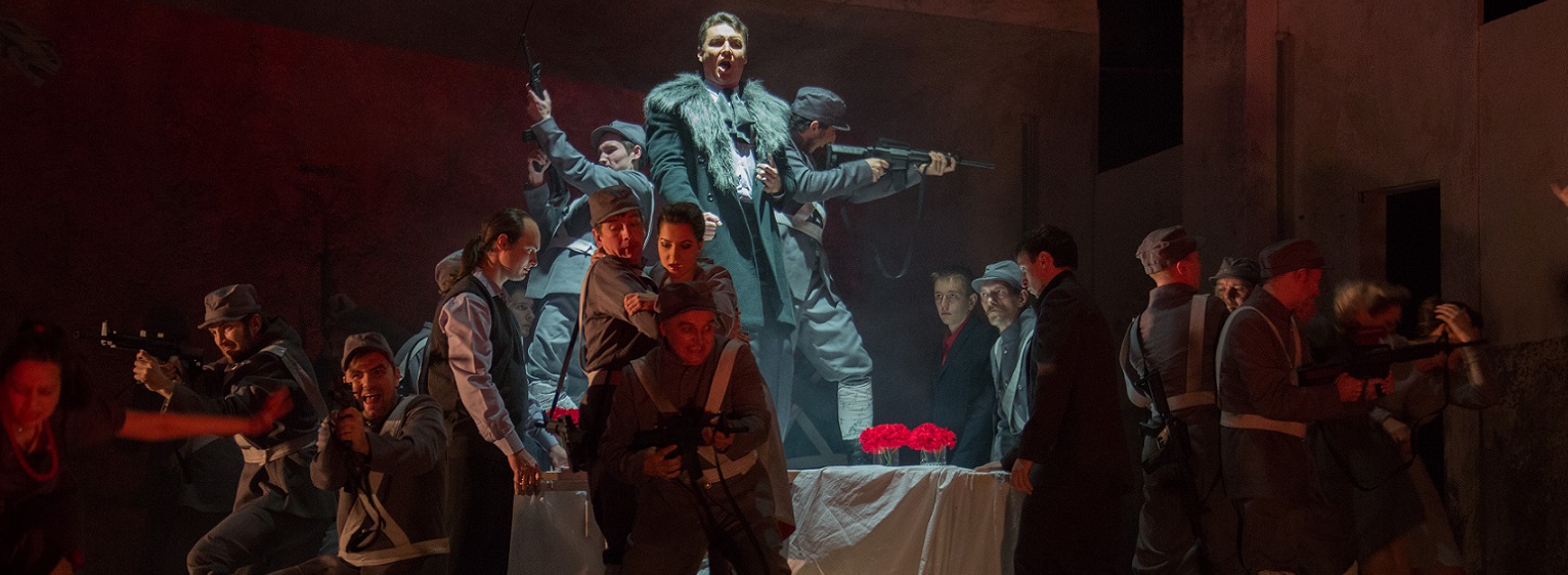 Цельности режиссерского решения вторит музыкальный строй спектакля: маэстро Евгений Волынский, как и положено, одновременно высвечивает лирику и стремится «ужаснуть» буйством драматических сцен, но главное свойство его интерпретации – экспрессивность в подаче материала. Оркестр театра – гибкий инструмент в его руках, где даже медные духовые играют на редкость слаженно.