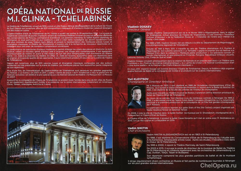 – Во-первых, мы представляем российское искусство и это важно, я бы сказал, что очень ответственно, особенно в период охлаждения между Европой и Россией. Во-вторых, мы представляем Челябинскую область, о которой мало кто знает. Организаторы подготовили красочный буклет, где есть информация о нашем театре и исполнителях. Кстати, буклеты хорошо продаются, а значит, зрители запомнят наш приезд. Вот один из отзывов на сайте театра о наших гастролях: