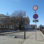 В настоящий момент со стороны ул. Цвиллинга установлены знаки дорожного движения, запрещающие парковку возле театра оперы и балета, и информирующие о принудительной эвакуации автомобилей.