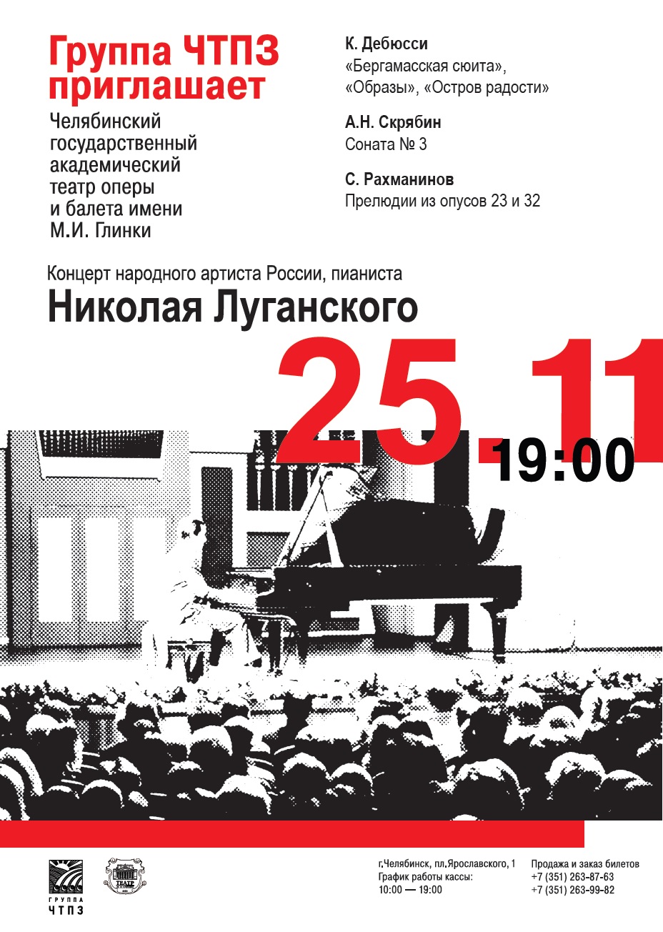 В программе концерта «Группа ЧТПЗ приглашает» – произведения Клода Дебюсси «Бергамасская сюита», «Образы», «Остров радости»; Соната №3 Александра Скрябина; прелюдии из Опуса 23 и Опуса 32 Сергея Рахманинова. В числе гостей музыкального вечера – лучшие сотрудники компании, студены корпоративной образовательной программы «Будущее Белой металлургии», ученики Детской школы вокального искусства, жители и гости Южного Урала.
