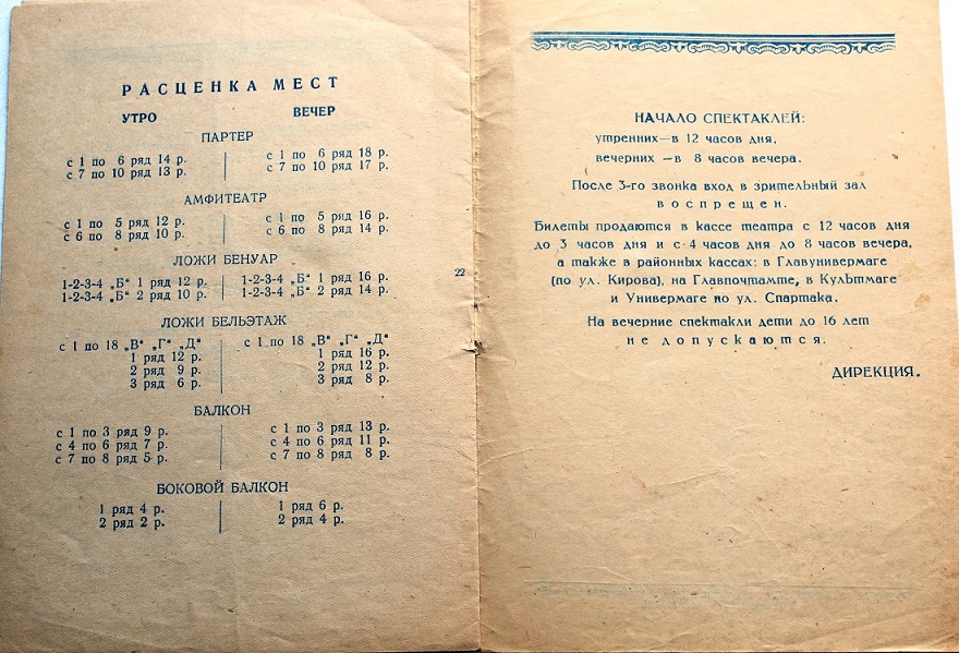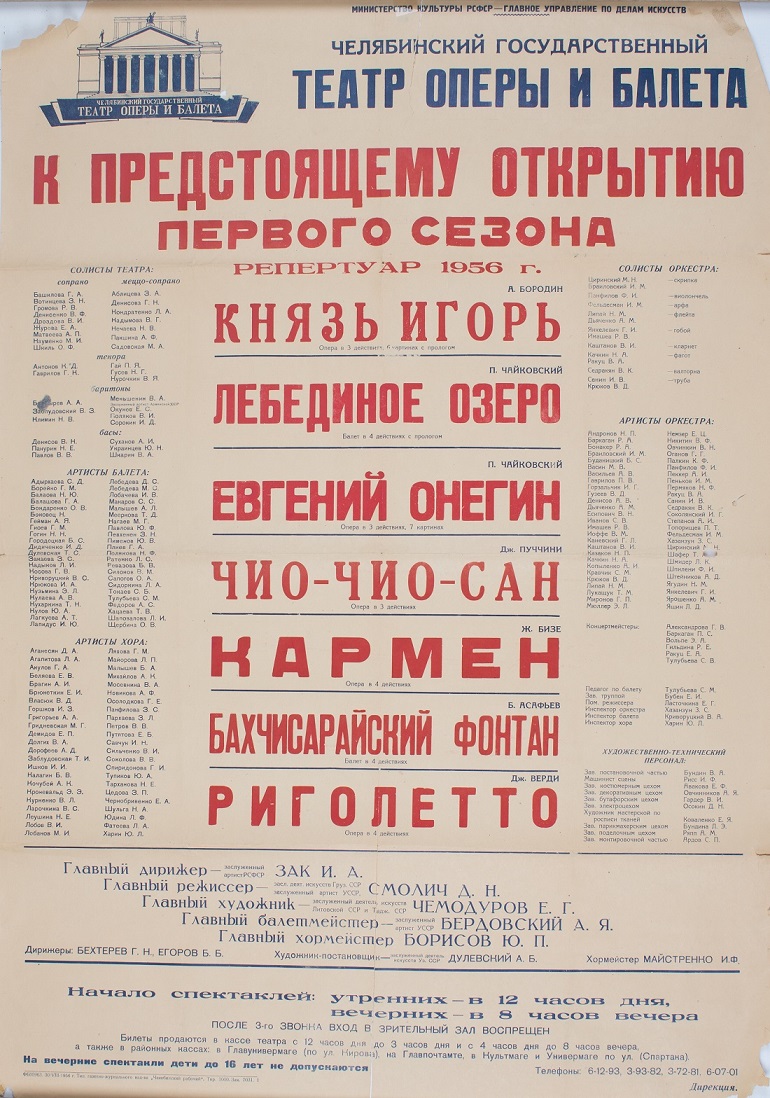 Сегодня мы решили показать одни из самых ценных материалов нашего архива: программку к первому спектаклю и первый пригласительный билет, афиши к открытию сезона 1956 года и первые отзывы. Давайте вместе вспомним, как все начиналось.