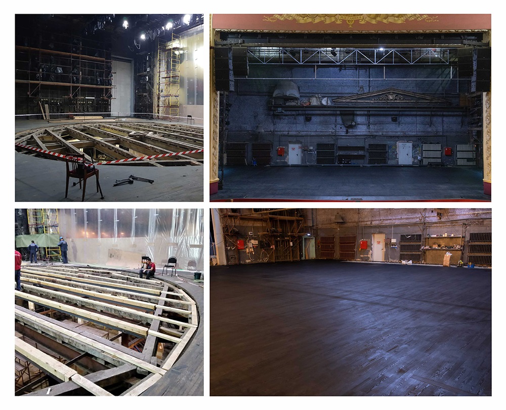 Преобразилась и святая святых театра – сцена. Ее настил отремонтировали с использованием трехслойного палубного бруса: два нижних слоя сделаны из сосны, верхний – из бессучковой лиственницы экстра сорта. Для предупреждения рассыхания древесины крепление бруса выполнили специальными анкерами с пружинами.