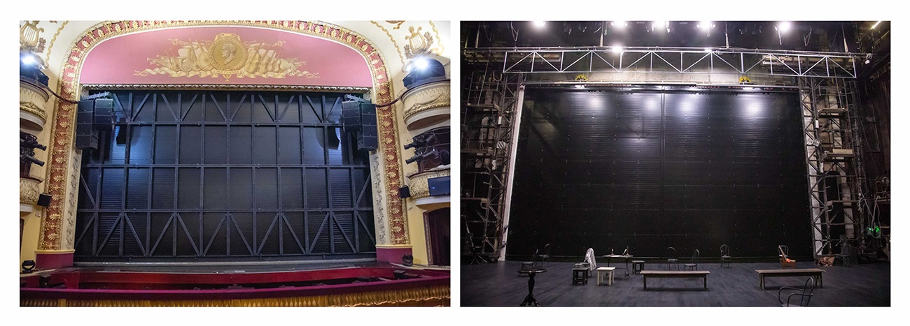 Также на сцене произвели монтаж нового противопожарного занавеса. Теперь его вес составляет 9 тонн – это в два раза легче предыдущего. Работы проводила московская фирма «Интоку», специализирующаяся на установке противопожарного оборудования в крупнейших театрально-концертных залах.