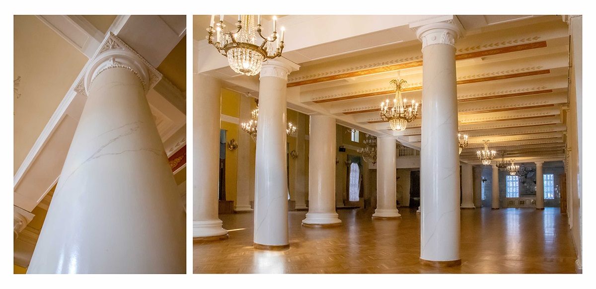 В зрительном зале изменили цвет стен, покрасили потолки в ложах. Чтобы добиться безупречного оттенка, окрашивание производилось в четыре этапа: сначала рабочие нанесли два слоя белой грунтовки, затем два слоя краски. Помимо этого, на входных группах балкона заменили балясины.
