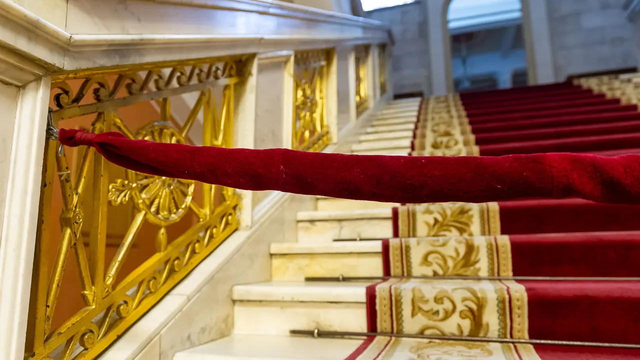 Экскурсия в Челябинский театр оперы и балета рассчитана на группы от 15 человек. И лучше, если это будут люди минимум подросткового возраста — локации очень интересные, но довольно сложные. Нашу группу в фойе собирает специалист по связям с общественностью театра Анастасия Черкас. Она обещает, что будет очень интересно: экскурсия — тоже своего рода спектакль, иммерсивный, то есть с погружением. И сначала мы отправляемся в шикарный, очень красивый зрительный зал.
