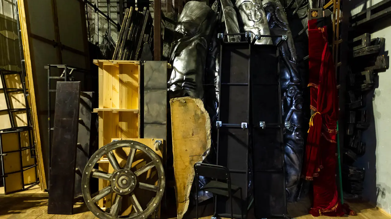 Ну и, наконец, закулисье с огромными декорациями и целыми воротами для завоза реквизита и крупных вещей в театр. Кажется, вот-вот откуда-нибудь выползет Змей Горыныч или выплывет все Лебединое озеро... Даже если вы давно не ребенок, покажется, что попали в сказку.