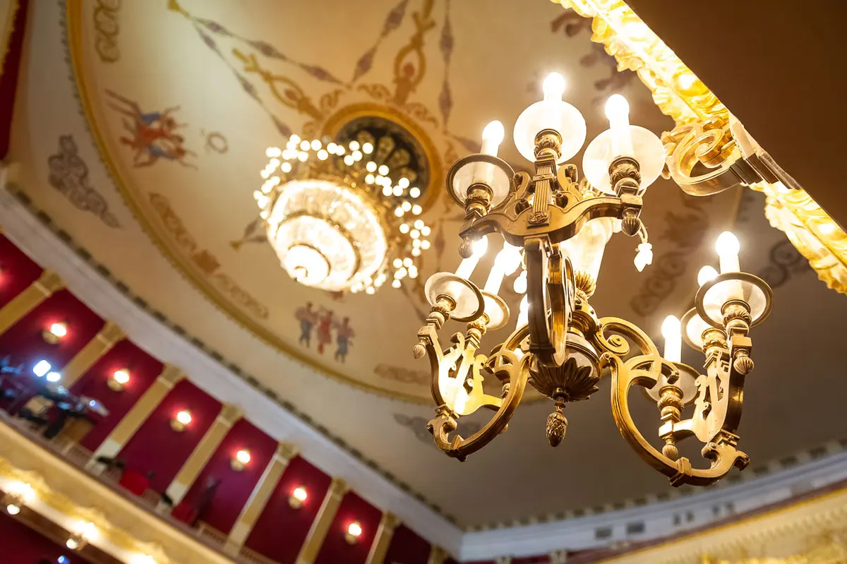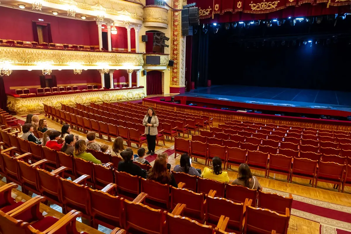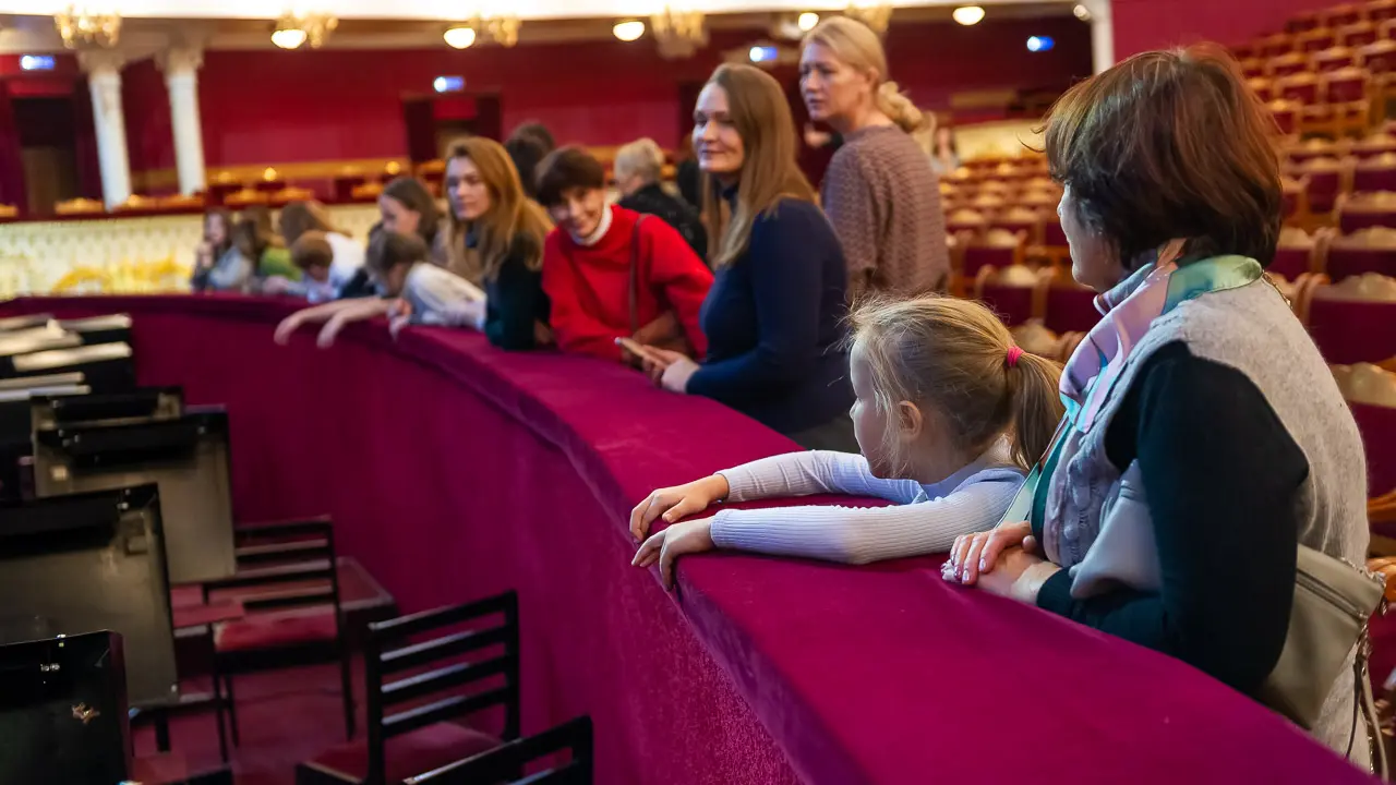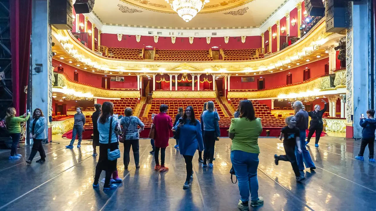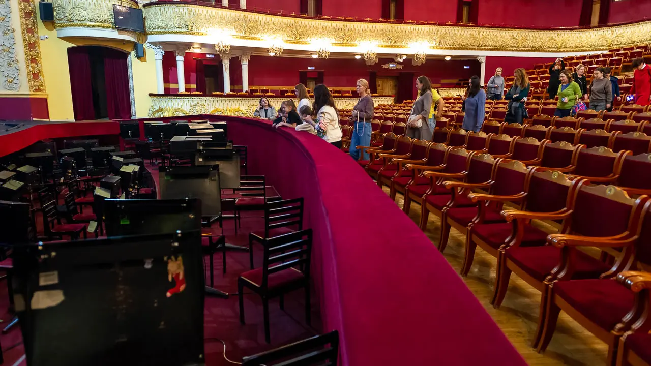 А для кого в оркестровой яме самые высокие стулья? А почему выкладывать паркет в зрительном зале нужно особым образом? Столько всего интересного, и это только первая локация экскурсии.