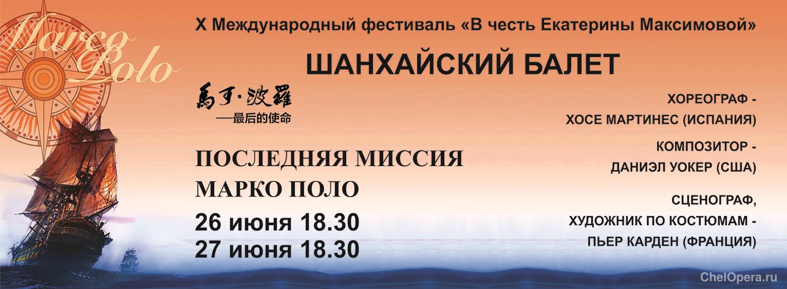 Впервые в России - оригинальная работа Шанхайского государственного балета «Последняя миссия Марко Поло». Постановка будет представлена челябинскому зрителю в рамках X Международного фестиваля «В честь Екатерины Максимовой» 26 и 27 июня.