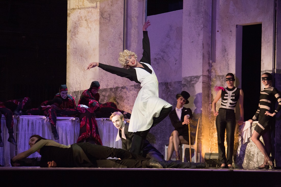 Спустя год после премьеры концертной версии публика увидела нового «Фауста». Спектакль стал одним из самых сложных, объемных и уникальных по оформлению и режиссерской концепции во всем репертуаре театра. Постановка впечатляет многоуровневой сценографией. На сцене – здание шириной 14 метров и высотой более 7 метров с полом, потолком и стенами. Сложнейшие декорации трансформируются то в постапокалиптическое пространство, то в рыночную площадь, то в ад.