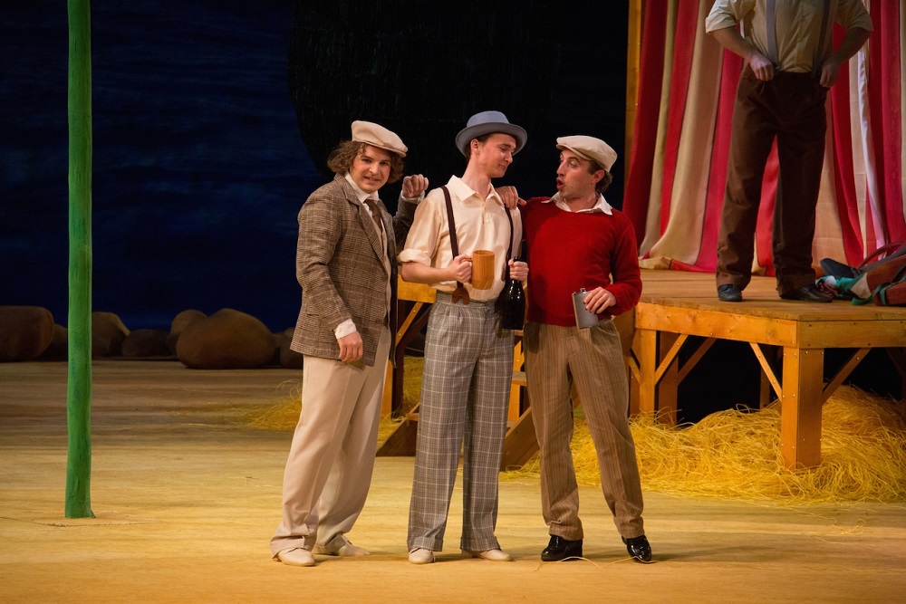 Обманутый муж, паяц Канио (артист Павел Чикановский) почти застает любовников, но Сильвио удается бежать и Канио не видит его лица. Он надеется разглядеть его в толпе зрителей на вечернем представлении. Один из самых драматичных моментов действия — Канио только что узнал о неверности жены, но ему нужно подниматься на сцену, чтобы веселить публику. Здесь Павел Чикановский выдает такую гамму эмоций, что у зрителя возникает крамольная мысль: а у него на финал-то останется пылу? Не сомневайтесь. Останется. Его Канио — фигура шекспировского масштаба.