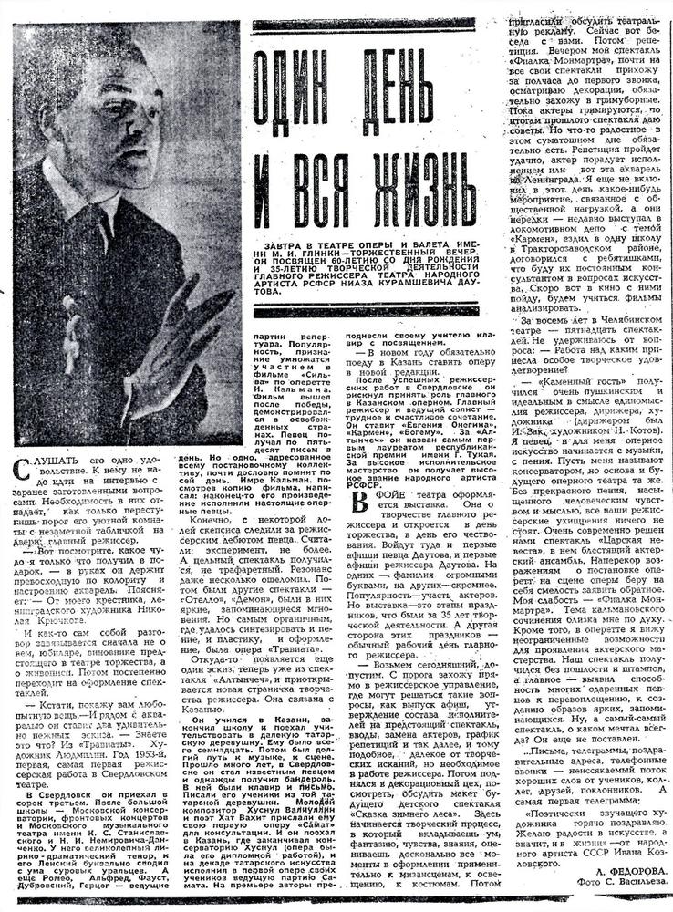 Театр имени Глинки продолжает рассказывать о людях, внесших большой вклад в развитие Челябинской оперы. В центре внимания – оперный певец, режиссер, народный артист России Нияз Даутов.