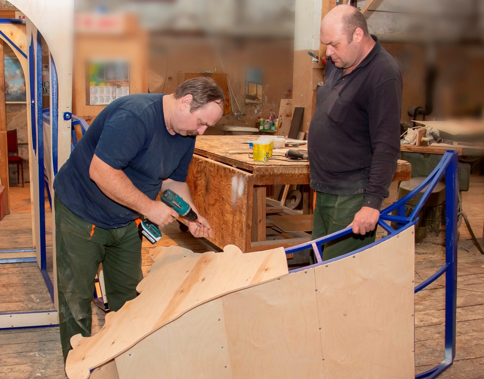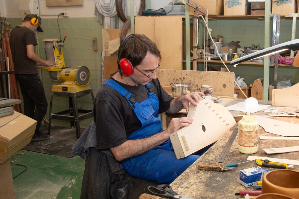 И это еще не все. В цоколе театра находится цех, где производят жесткие декорации и мебель. Старинные секретеры, камины, императорские троны и многое другое создают плотники производственной мастерской, которой заведует Владимир Нуждин.