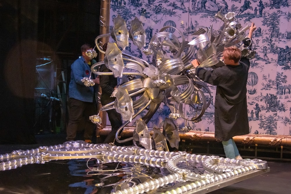 После того как элементы сценографии готовы, они передаются в другие службы. Так, цех реквизита, которым заведует Ксения Цвариани, отвечает за то, чтобы все необходимые предметы были на сцене как во время спектакля, так и в процессе репетиций.