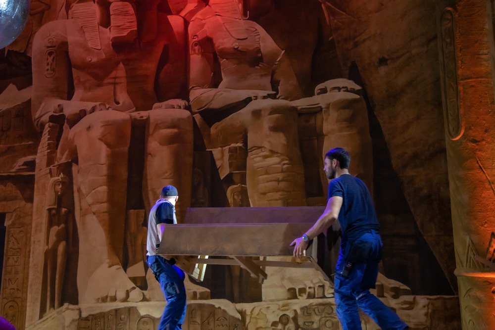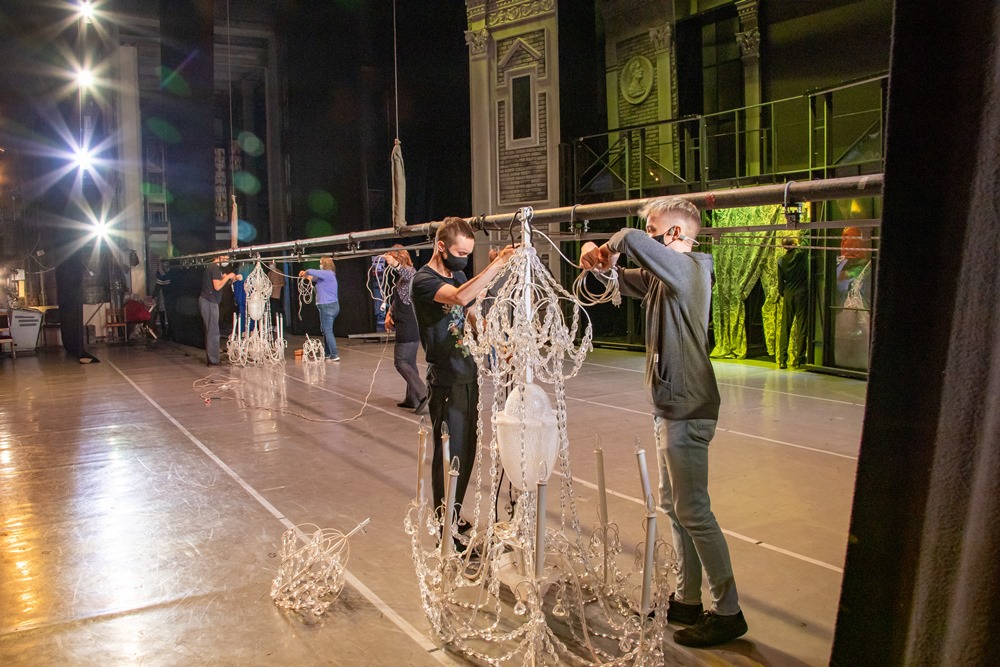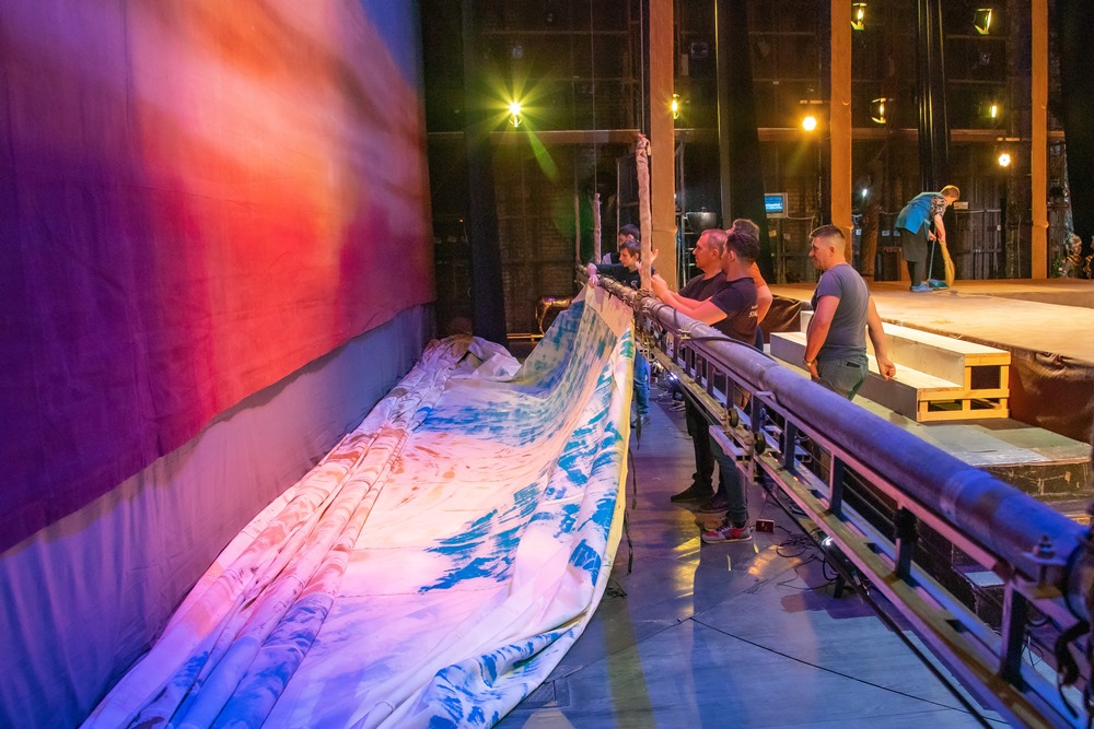 Установкой декораций занимается машинно-декорационный цех под руководством Руслана Мустафина. Когда занавес открывается после антракта, перед зрителями возникает новая картина – все это дело рук монтировщиков, которые за 20 минут перерыва успевают преобразить пространство сцены. Как известно, спектакли в театре идут практически каждый день. Чтобы сделать демонтаж декораций к одной постановке и поставить конструкции к следующей, сотрудники цеха работают даже в ночные смены.