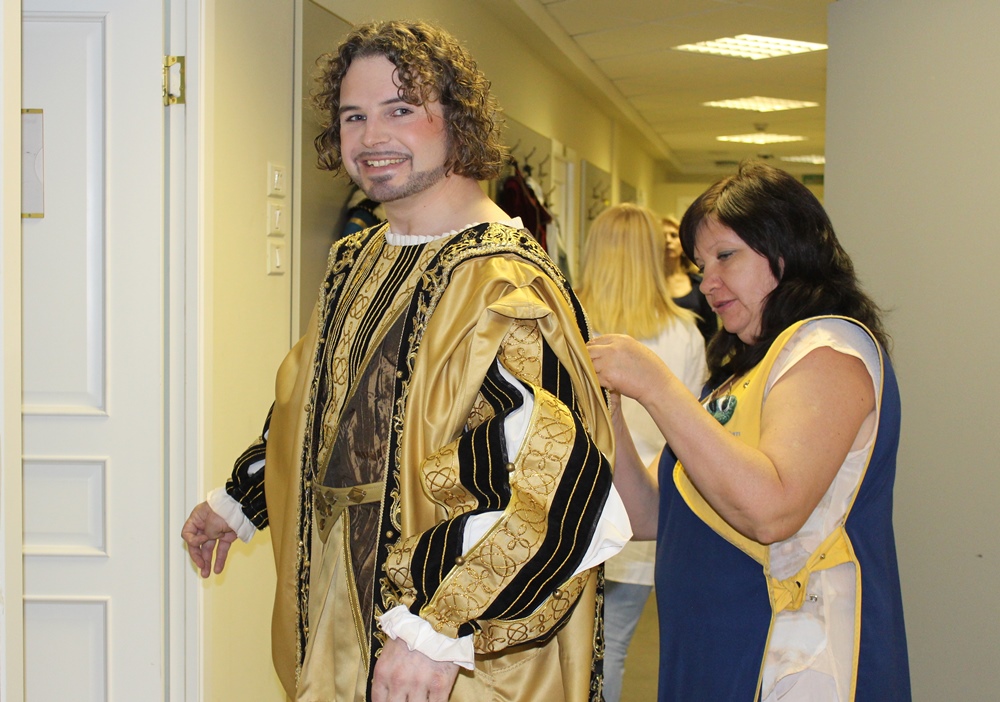 Сотни балетных пачек, платьев, юбок, фраков, брюк и пиджаков бережно хранятся в цехах Ольги Медведевой и Людмилы Тусовой. Перед спектаклем костюмы развешивают на специальных станках в коридорах возле гримерных комнат. Помочь артисту быстро перевоплотиться в другой образ, застегнуть сложный корсет, экстренно пришить пуговицу – за все это отвечают сотрудники мужской и женской костюмерных.