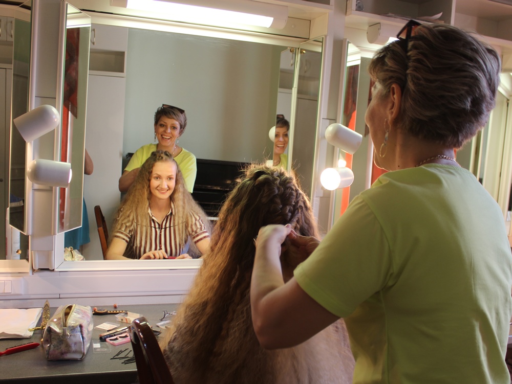 Укладкой волос и нанесением сценического макияжа занимаются специалисты гримерно-парикмахерского цеха под руководством Ольги Анищенко. Подобрать парик для Кармен или создать образы для оперы «Пиковая дама», сделать голливудскую прическу Эвридике или до неузнаваемости преобразить артистов в спектакле «Аида» – наши мастера справятся с самой сложной задачей.