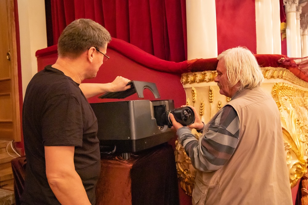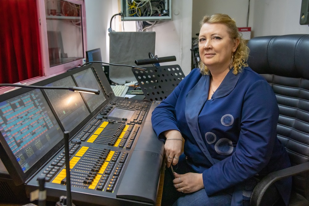 Неотъемлемая часть сценографии – свет. Электроосветительным цехом заведует Екатерина Долинина. Ее команда помогает реализовывать идеи художников, а иногда Екатерина сама прописывает световые партитуры. Например, недавно прошел концерт к 150-летию Скрябина, на котором стены и потолок зрительного зала превращались то в звездное небо, то «пылали» огнем, то становились бушующим морем.