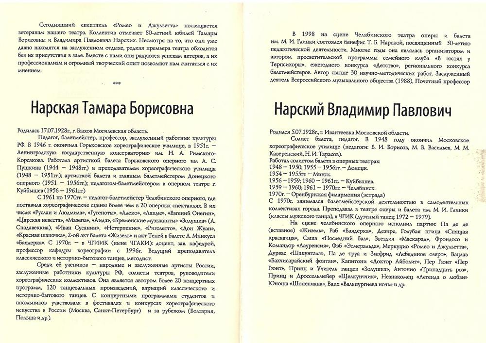 В 1961 году Тамара Борисовна получила приглашение занять должность репетитора балета в челябинском театре. К тому времени здесь на протяжении сезона ведущим солистом балета работал ее супруг – Владимир Павлович Нарский.