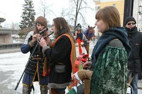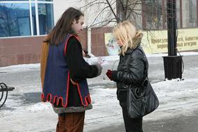 Посетивших это красочное действо ожидали встреча со средневековыми рыцарями и их дамами сердца, песни и танцы, конкурсы и сюрпризы, а также пригласительные флаеры со скидкой на премьеру спектакля в театр оперы и балета.