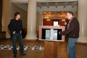 сценограф Антон Сластников рассказали о своем видении данного спектакля. При помощи специально подготовленных макетов были представлены декорации, эскизы костюмов, сценарный ход постановки, а также световое решение, что позволило уже сейчас окунуться в атмосферу самого спектакля.