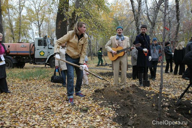 16 октября в Саду Победы в честь 150-летнего юбилея А.П.Чехова артистами челябинских театров была заложена аллея вишневого сада.