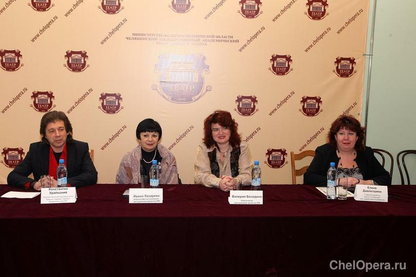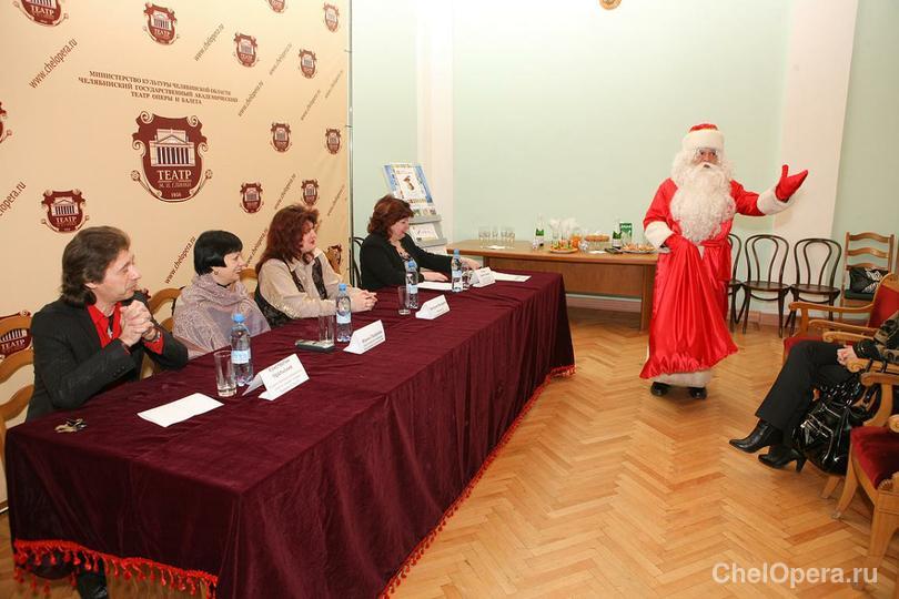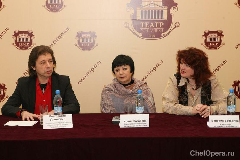 В пресс-конференции приняли участие – композитор, заслуженная артистка России, лауреат премии Правительства РФ Валерия Беседина, балетмейстер-постановщик спектакля, заслуженная артистка России, педагог-репетитор Большого театра РФ Ирина Лазарева, художественный руководитель балета, лауреат премии Правительства РФ Константин Уральский и заместитель директора по развитию театра, главный редактор театральной газеты «Созвучие» Елена Давлетшина. Ирина Лазарева и Валерия Беседина совместно работали над созданием нового либретто к спектаклю, впервые поставленного в марте этого года в Красноярском театре оперы и балета. Авторы нового «Кота в сапогах» рассказали о главной идее спектакля, удовольствии, сопровождающем процесс создания сказочного доброго балета, поделились позитивными впечатлениями от работы с Челябинскими артистами, озвучили творческие планы на будущее. В финале пресс-конференции всех журналистов и участников с Наступающим новым годом поздравил… Дед Мороз, который вручил настоящие подарки и с удовольствием сфотографировался с московскими гостями и руководителями театра.Премьера спектакля «Кот в сапогах» состоится совсем скоро! – 25 декабря 2010г. Начало в 12.00