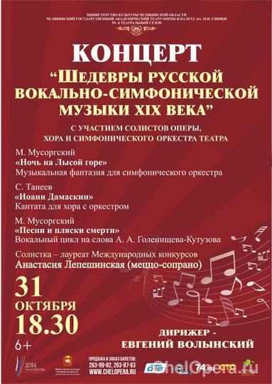 Концерт «Шедевры русской вокально-симфонической музыки ХIХ века» 31 октября, 18.30