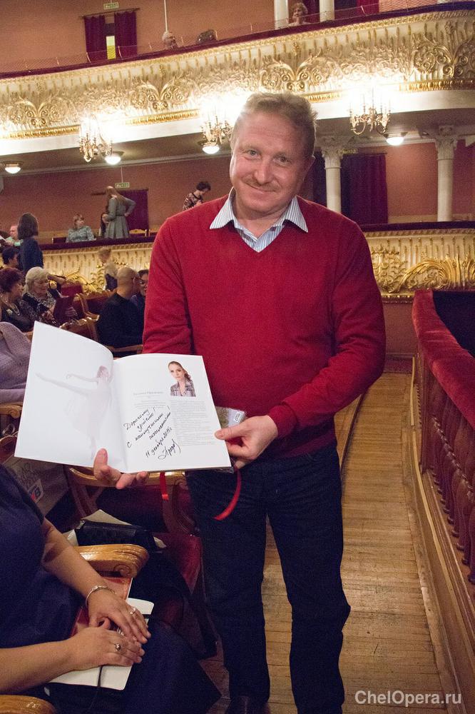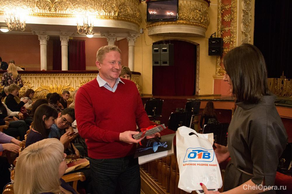 По условиям акции, кресло с сюрпризом выбирается в зрительном зале наугад, а обладатель счастливого билета получает подарки: буклет с автографом от прима-балерины нашего театра, народной артистки России Татьяны Предеиной и набор дисков «Все Чудеса Урала» от Медиахолдинга ОТВ.