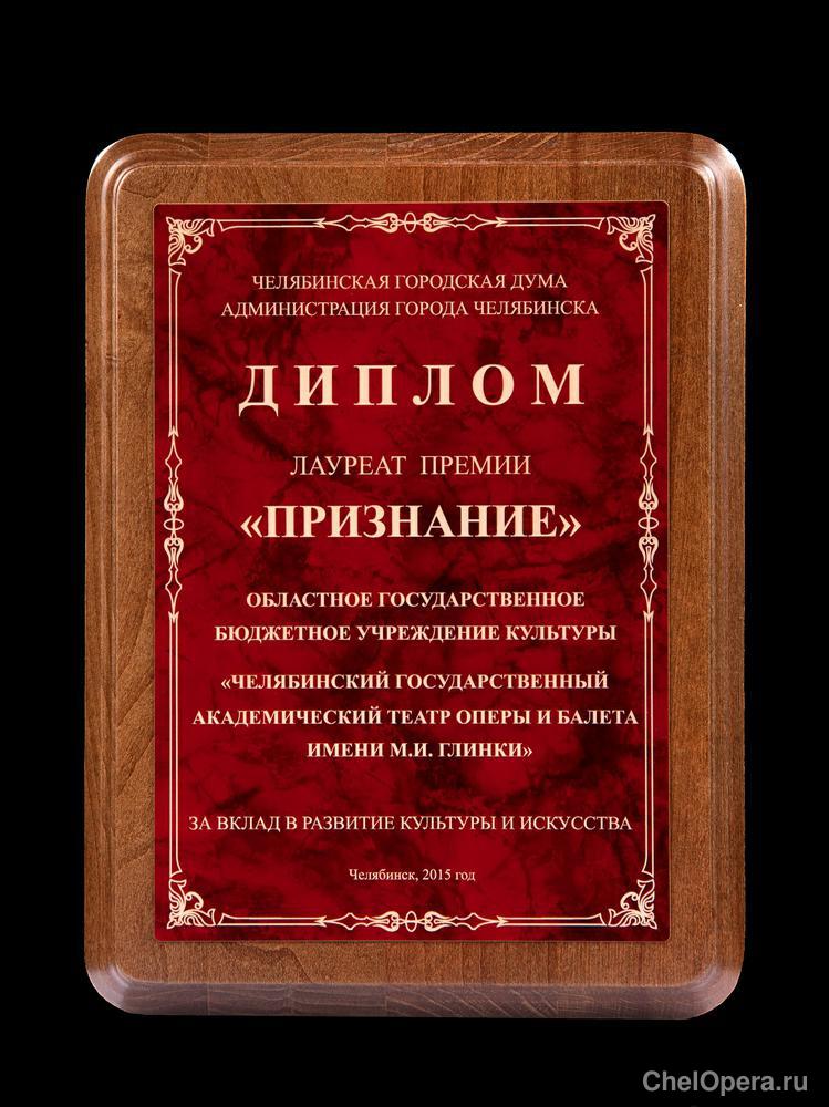 В номинации «За вклад в развитие культуры и искусства» был награжден Челябинский государственный академический театр оперы и балета имени М.И. Глинки.