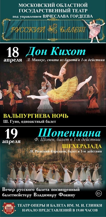 Московский областной государственный театр «Русский Балет» радует своим творчеством российскую и зарубежную публику уже более 30 лет. Свою творческую жизнь театр начал в 1984 году с небольшого ансамбля «Молодой балет», руководителем которого стал выдающийся танцовщик, премьер Большого театра, народный артист СССР Вячеслав Гордеев. Его талант и сценический опыт, незаурядный дар организатора преобразили ансамбль в перспективный высокопрофессиональный балетный коллектив, который впоследствии вырос в государственный театр «Русский Балет». В самом названии заложена основная миссия театра – популяризация русского классического балетного искусства, сохранение великого наследия русской классической школы.