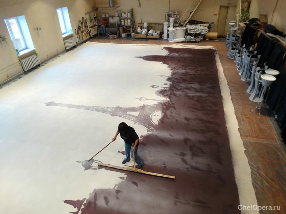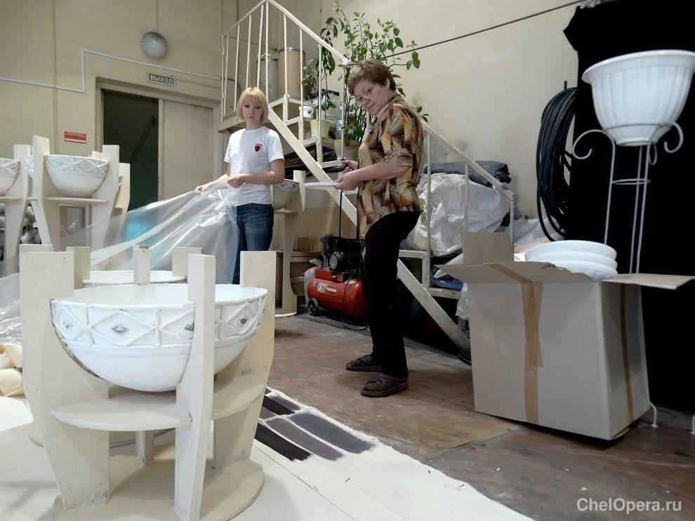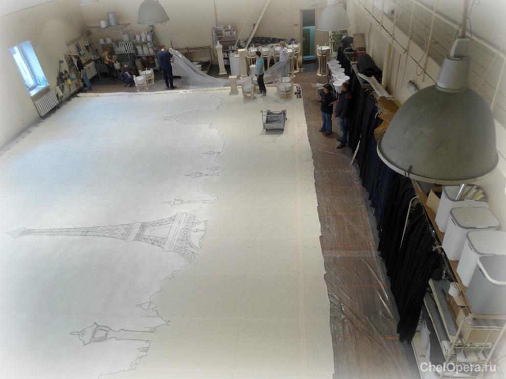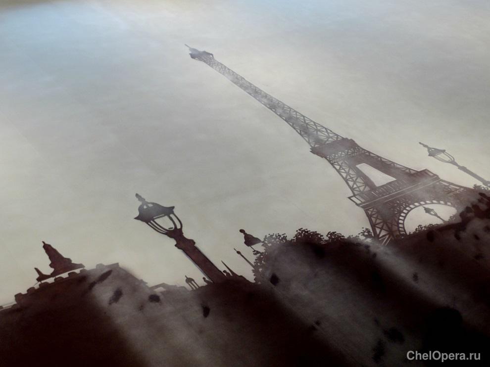 В Челябинской постановке много собирательных образов и символов. Первая массовая сцена - в художественном салоне Александра Бенуа. Площадку украшает огромная хрустальная люстра. Силуэт Эйфелевой башни в окне указывает на то, что действие происходит в Париже. Все выдержано в стиле модерн, зародившемся в конце XIX – начале XX вв. В следующей мизансцене перед зрителями уже Испания.