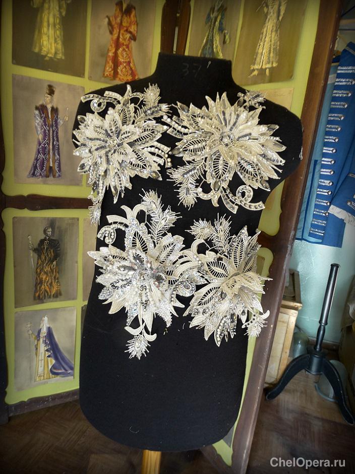 - В костюмах много камней. Мы старались делать отделку, чтобы было красиво и эффектно, - пояснила художник по костюмам Елена Сластникова. - Время и место, где все происходит, предполагает лоск, богатство и блеск. Тем более речь идет об известной балерине, у которой своя балетная труппа. Она дива! У нее всегда был яркий образ. От заказчика (прим. - французский продюсерский центр «Arame Production») было пожелание, чтобы в костюмах было больше прозрачности. Это нужно, чтобы тело лучше читалось. Наряду с легкостью и воздушностью в костюмах есть некая жесткость. Мы использовали довольно графичные образы. Среди декораций есть витражи в виде решеток, орнамент на костюмах повторяет их.