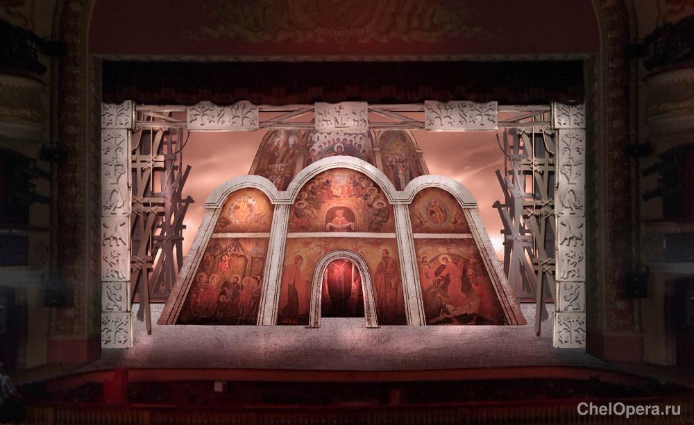 - Во время пролога на сцене будет три плана кулис из настоящего дерева с канатами. Это имитация лесов, строящегося храма, строящейся Руси, - рассказал художник Антон Сластников. – В основном для изготовления этих декораций будет использоваться сосна. Мне нравится, чтобы чувствовалась фактура. Интересной деталью будет белокаменная лепнина, которая расположится по краям всей сцены. Таким образом, у спектакля появится обрамление, декоративная рамка.