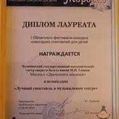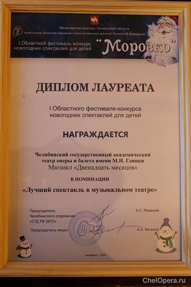 В итоге мюзикл «Двенадцать месяцев» был признан «Лучшим спектаклем в музыкальном театре». Антон Сластников награжден дипломом за «Лучшие декорации», а Елена Сластникова – за «Лучшие костюмы». Кроме того, исполнительница роли мачехи Гузелья Шахматова стала лауреатом в номинации «Лучшая женская роль второго плана».