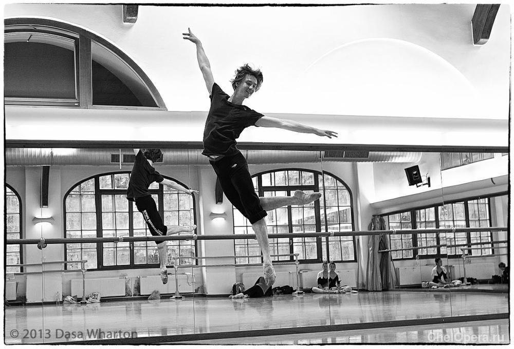 Тренируемся каждый раз по-разному. Бывает несколько недель подряд по четыре–пять балетов репетируешь в день. Самое худшее — с 10:30 до 18:30. Ты танцуешь Дон Кихота, потом перебегаешь в другую студию — и ты уже Ромео, потом Арман, ещё кто-то. Плюс перед этим обязательно урок-разминку сделать нужно — без него нельзя репетировать, можно травмироваться. Такая разминка для нас — как почистить зубы.