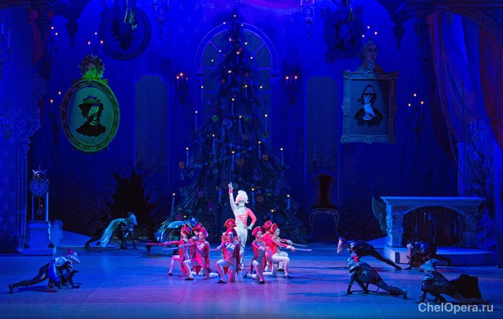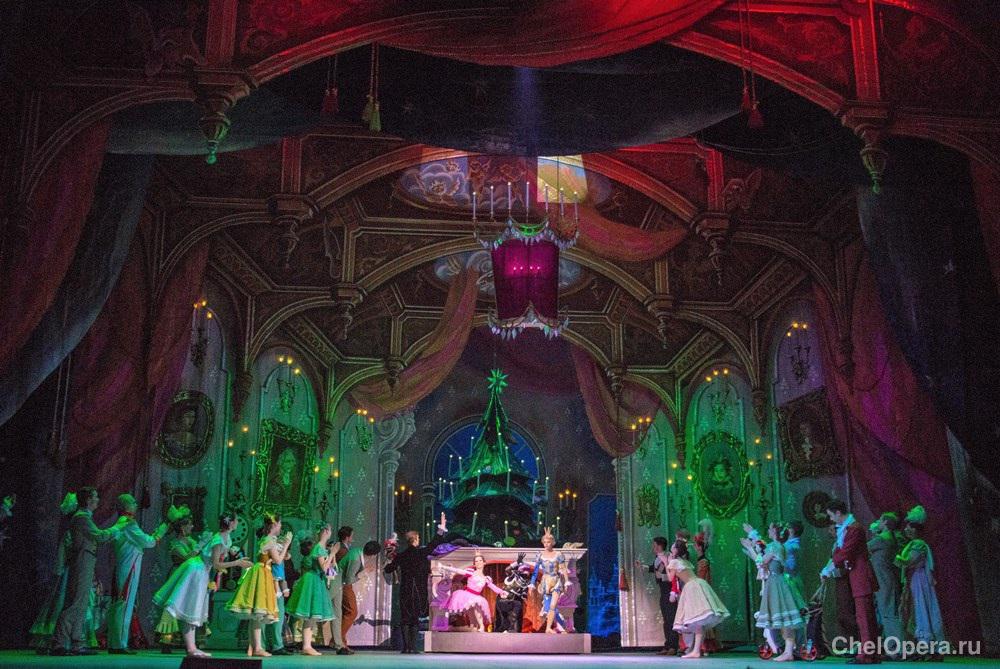 В челябинском театре «Щелкунчика» поставил художественный руководитель балета, народный артист России Юрий Клевцов. Все происходящее на сцене завораживает: елка разрастается до гигантских размеров, бальная зала превращается в зимний лес, а танцующие снежинки парят в воздухе.