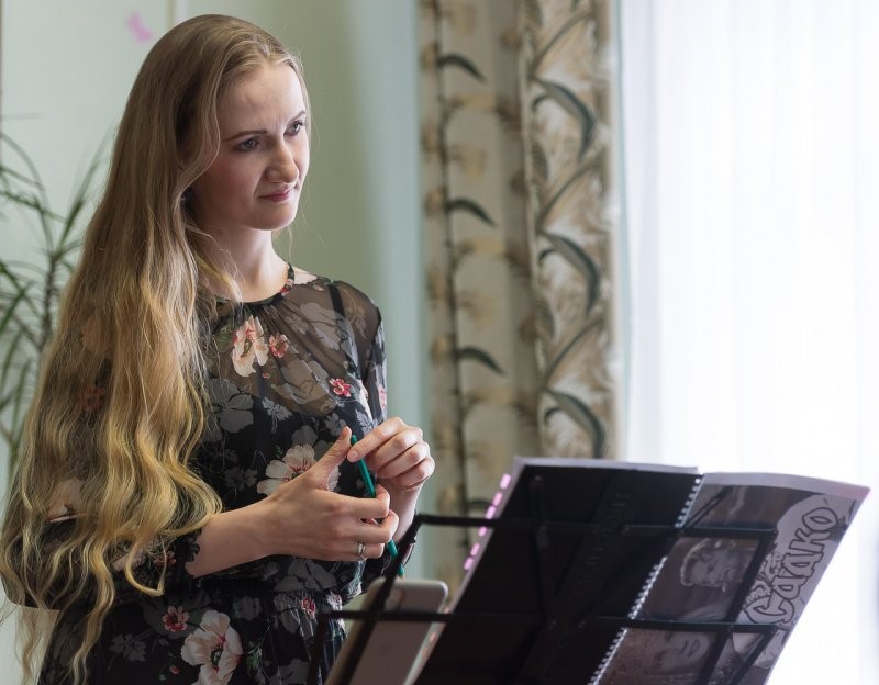 Утром солистка Дарья Аброськина репетирует партию Любавы. Вместе с ней в репетиционном кабинете — еще пятеро человек: дирижеры, аккомпаниатор. Перед началом репетиции звучит пара реплик о нехватке дешевой гречки в соседнем магазине, но очень быстро разговор заканчивается, солистка берет ноты и начинается процесс.