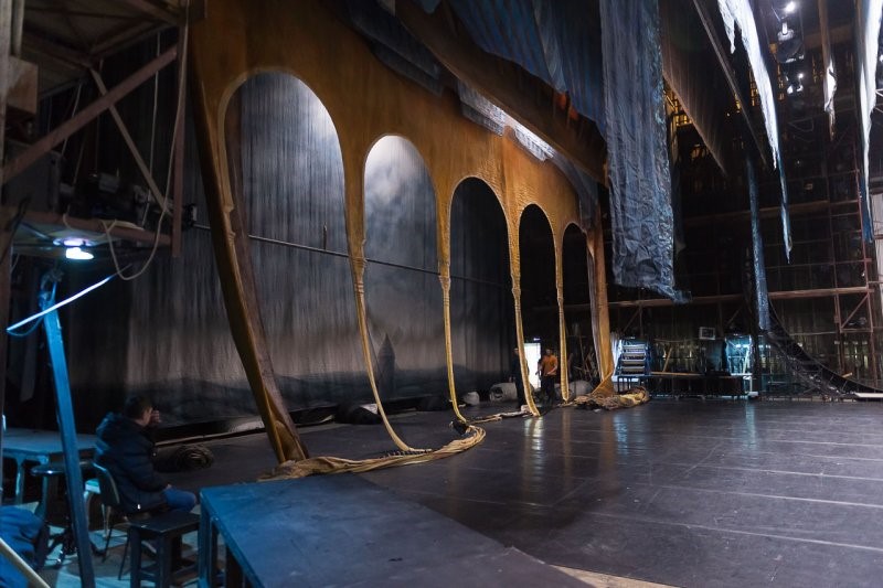 Сцена театра сейчас задействована и для репетиций, и для обустройства и подгонки декораций. Они будут масштабные, красочные.