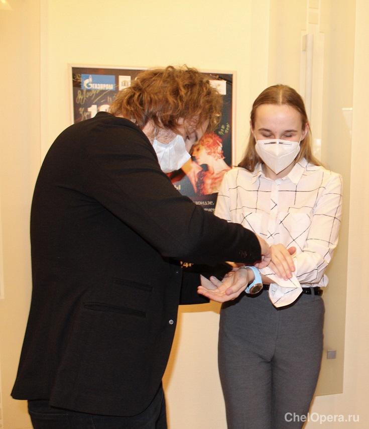 Мы получили письмо от Анастасии Калошиной, подопечной Детского благотворительного фонда «Андрюша». Пятнадцатилетняя девушка, несмотря на проблемы со зрением, занимается академическим вокалом и даже выступала на одной сцене с профессиональными артистами. В прошлом театральном сезоне она приняла участие в концерте «”Магнификат” и другие шедевры хоровой музыки», исполнив арию Лауретты из оперы «Джанни Скикки» Джакомо Пуччини. В подарок Настя мечтала получить электронные часы с крупными цифрами. Но особым сюрпризом для юной певицы стало то, что поздравлять ее пришли солисты оперной труппы Алексей Пьянков и Дарья Аброськина. Помимо часов, Анастасии вручили пригласительный билет на мультимедийный Steinway-концерт и книгу о нашем театре.