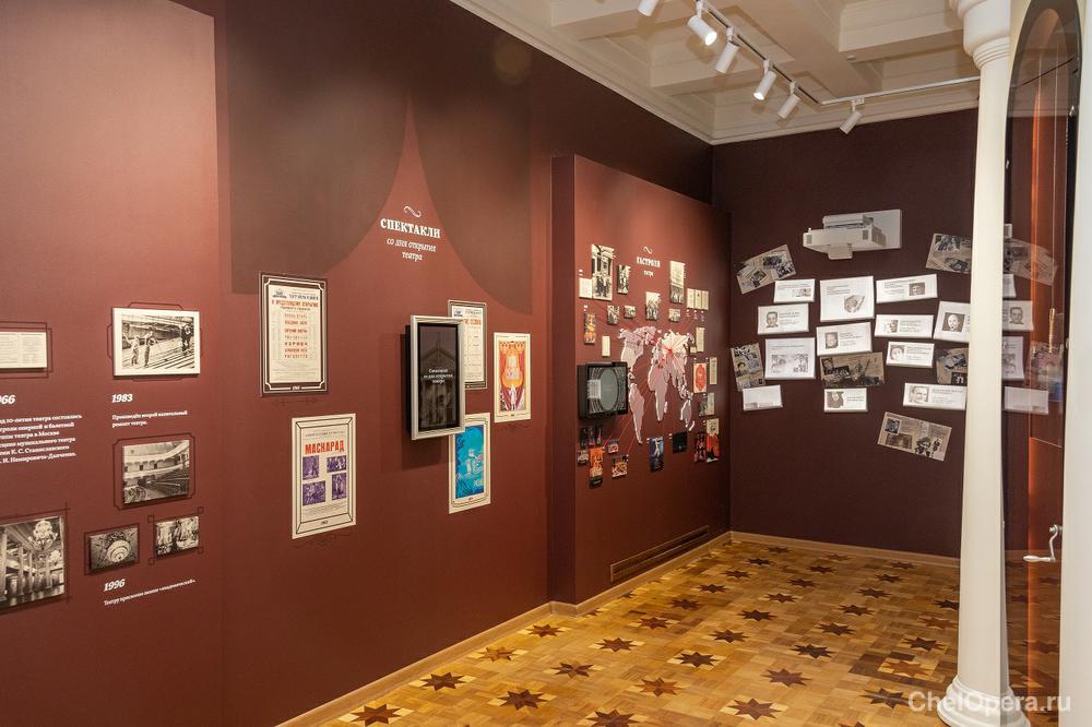 Привлекают внимание и музейные витрины. В них представлены архивные материалы с первого спектакля «Князь Игорь», макет декораций и реквизит к опере «Садко». Отдельные стенды посвящены устройству сцены и строению пуанта.
