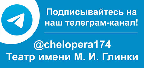 Уважаемые зрители! Теперь Челябинский театр оперы и балета есть и в Telegram. Чтобы найти нас в этом приложении, нужно перейти по ссылке https://t.me/chelopera174 или ввести в поиске: «Театр имени М. И. Глинки» или «chelopera174».