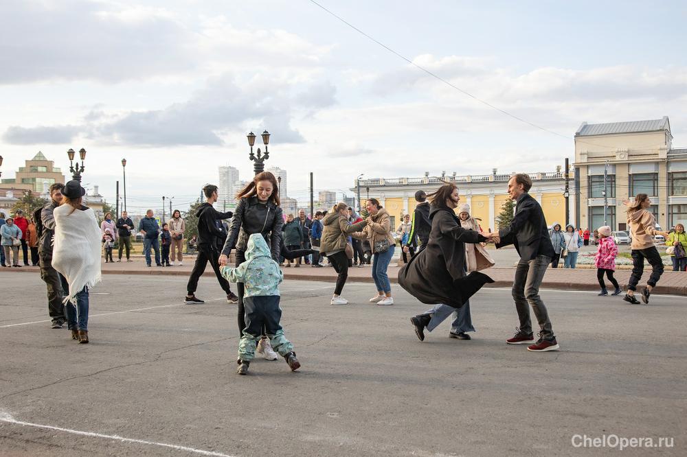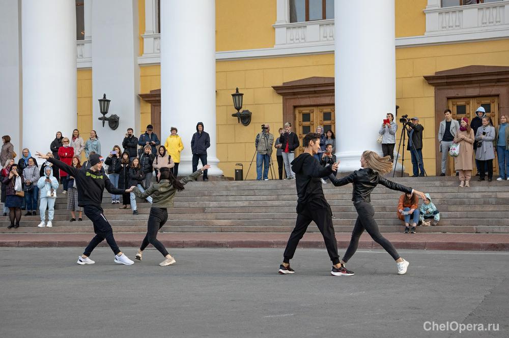 Действие развернулось прямо перед центральным входом в театр. Вместо пачек, фраков и пуантов – джинсы, куртки и кроссовки. Артисты не просто танцевали, а рассказывали романтическую историю любви. Ритмичную песню Бруно Марса сменяла лирическая композиция группы «Моя Мишель», а затем звучал хит от The Killers. В финале 20-минутного спектакля к профессиональным артистам присоединились и зрители – получился настоящий праздник танца.