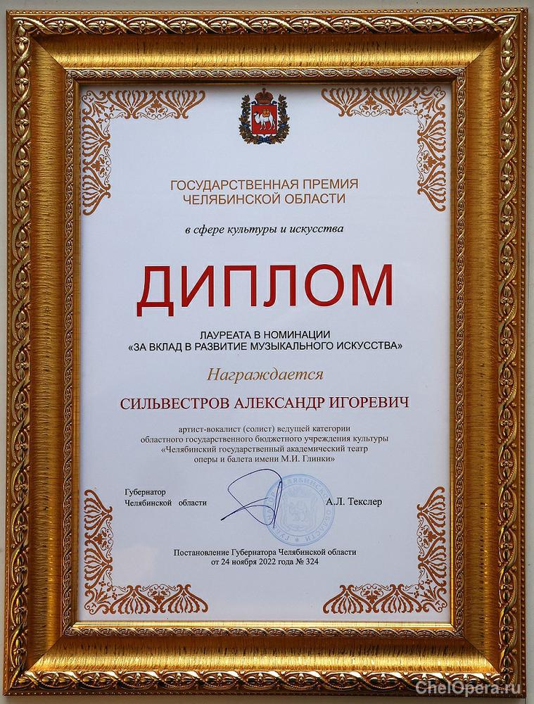 Александр Сильвестров служит Челябинскому театру оперы и балета с 2015 года. Сейчас в репертуаре артиста более 20 партий, среди которых Евгений Онегин, Риголетто, Князь Игорь и другие. Солист театра имени Глинки был отмечен за вклад в развитие музыкального искусства.