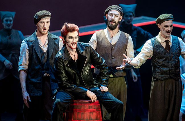 В мюзикле динамично переплетаются диалоги, песни, музыкальные номера, хореографические композиции. Обычно артисты для участия в мюзикле выбираются на кастингах, где в первую очередь участвуют драматические поющие артисты. В челябинском театре мюзикл иной: одновременно работают все артисты труппы — балет, солисты оперы, хор. Следовательно основная танцевальная нагрузка досталась балетным. Хореография в спектакле ближе к современной пластике, чем к классическим постановкам, понадобилась серьезная работа артистов. Оперным певцам тоже «досталось»: необходимость петь после активных танцевальных па потребовала определенной тренировки. Солист оперы, баритон Виталий Савельев исполняет одну из главных ролей — партию Меннерса-младшего.