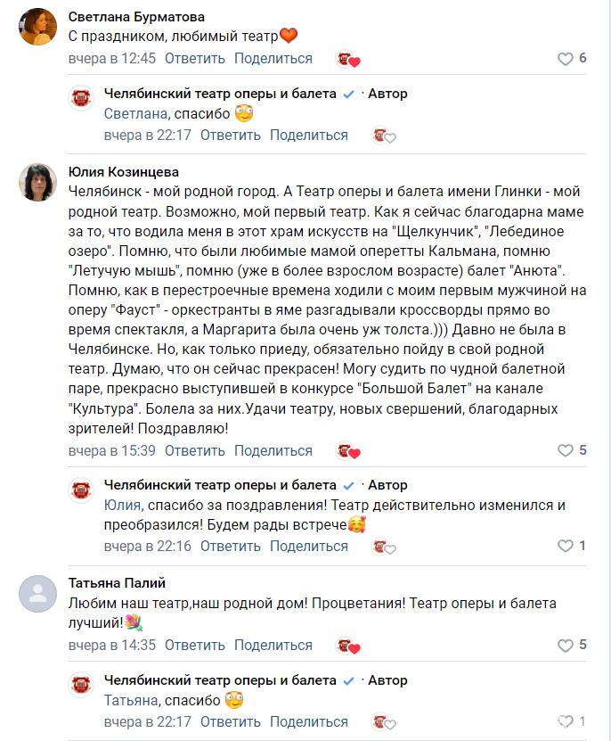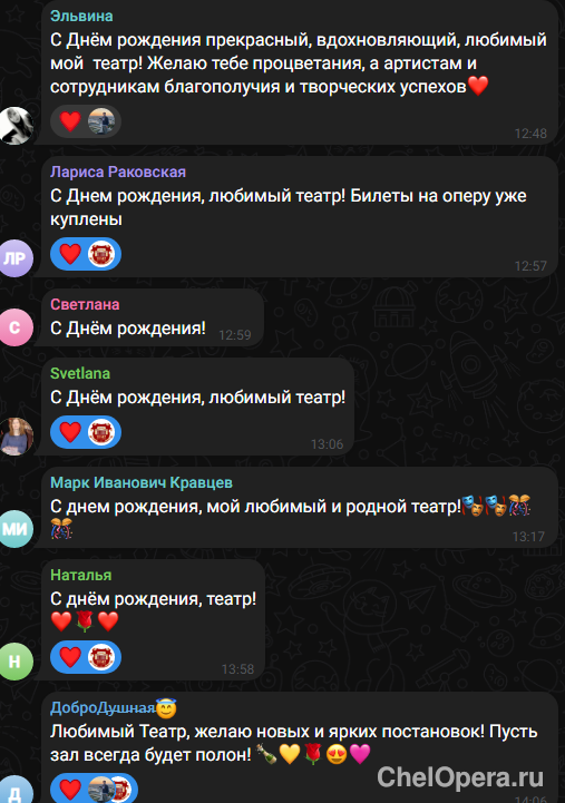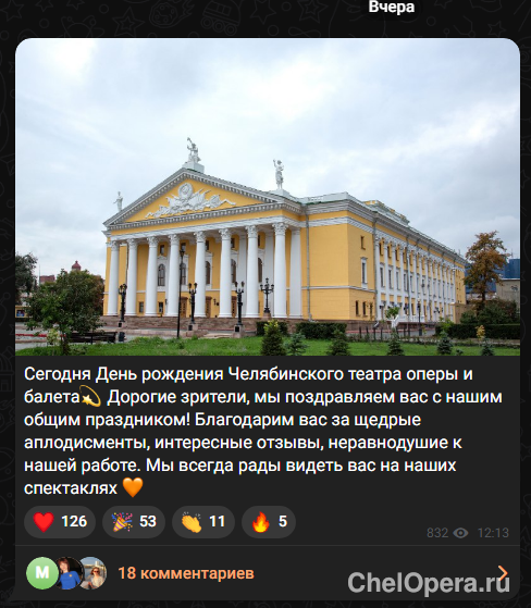 29 сентября – день рождения Челябинского театра оперы и балета имени М. И. Глинки. Принимаем поздравления от зрителей и читаем публикации в прессе, посвященные этому событию.