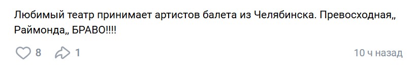 Премьера балета «Раймонда» Александра Глазунова в постановке народного артиста России Юрия Клевцова на челябинской сцене состоялась в 2023 году в рамках фестиваля «В честь Екатерины Максимовой». Это первый выезд коллектива на гастроли со спектаклем. В Екатеринбурге в главных партиях выступили лауреат международных конкурсов Лири Вакабаяси, Алексей Шакуро, лауреат международных конкурсов Кубаныч Шамакеев. Уральские зрители по достоинству оценили образец классического балета, в доказательство тому – отзывы из социальных сетей:
