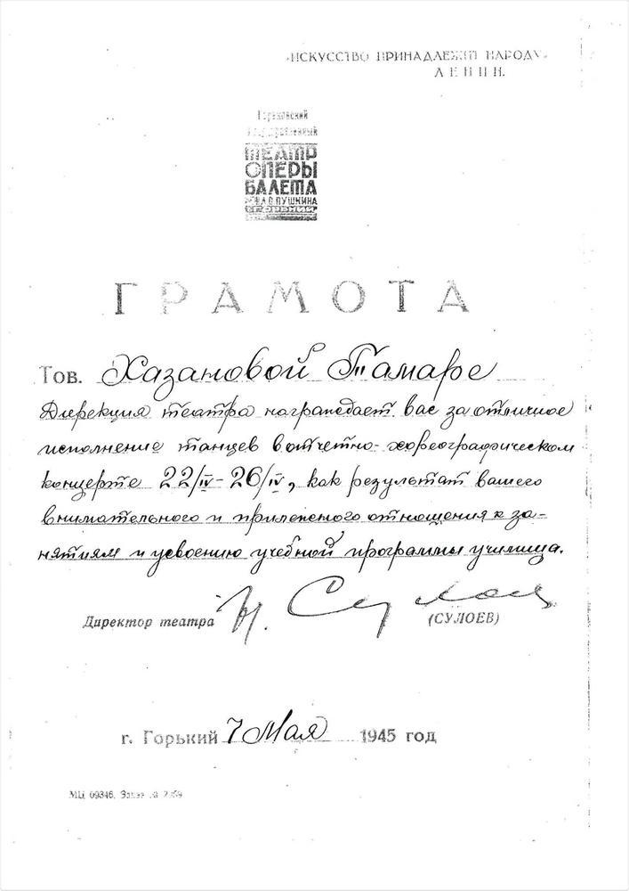 Тогда же, осенью 42-го, продолжая учиться в школе, я поступила в хореографическое училище при Горьковском театре оперы и балета им. А. С. Пушкина, а зимой уже танцевала в концертных бригадах для раненых (пока еще в массовках), заменяя артистов, ушедших на фронт. Концерты давали в госпиталях, в бывших школьных залах, в коридорах, порой прямо в палатах в проходах между койками. Среди раненых было немало бойцов, годных нам в отцы, и потому никого не обижало, когда нас просили: «Деточка! Еще! Еще немного!» И мы пели, танцевали, читали стихи, а окончив номер, убегали за занавес, чтобы не разрыдаться при всех, но, сделав усилие, с улыбкой выбегать на поклон. Много лет спустя, на одном из юбилеев нашего выпуска, мой тогдашний партнер напомнил один потрясающий эпизод. Концерт шел в школьном зале. Раненные сидели на полу, стояли у стен. В первом ряду, совсем рядом с нами сидел боец – молодой или старый – не знаю. Вся голова его была в бинтах, кажется, даже и глаза, руки тоже в бинтах. И вдруг он начал ритмично двигать этими руками в такт мелодии танца. Он «подтанцовывал». Не знаю, как у меня хватило сил улыбаться…